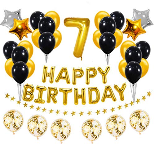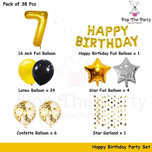 HomeBabyParty SuppliesPop The Party Golden and Black 7th Birthday Party Decorations Set- Gold Happy Birthday Banner,Foil Number Balloons, Latex Balloons and More for 7 Years Old Birthday Party Supplies