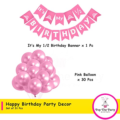 Pop the Party Half Baby Girl Pink Decoration Kit with Latex Balloon and Its My Half Birthday Decoration