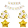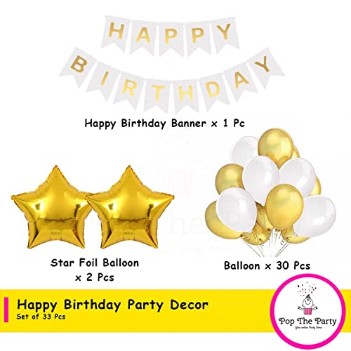 HomeBabyParty SuppliesPop The Party Happy Birthday Balloon Banner Decoration - White Birthday Banner White Gold Latex Balloon and Star Foil Decoration Set Kids Girl Boys Women Men Adults Birthday Party Supplies