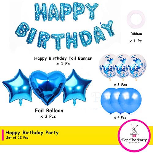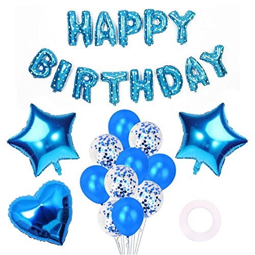Happy Birthday Balloons Decorations Set- 13 pcs Letter Balloons Banner 2 pcs Giant Star Foil Balloons3 pcs Confetti Balloons1Heart Balloon 4 pcs Latex Balloons (Blue)