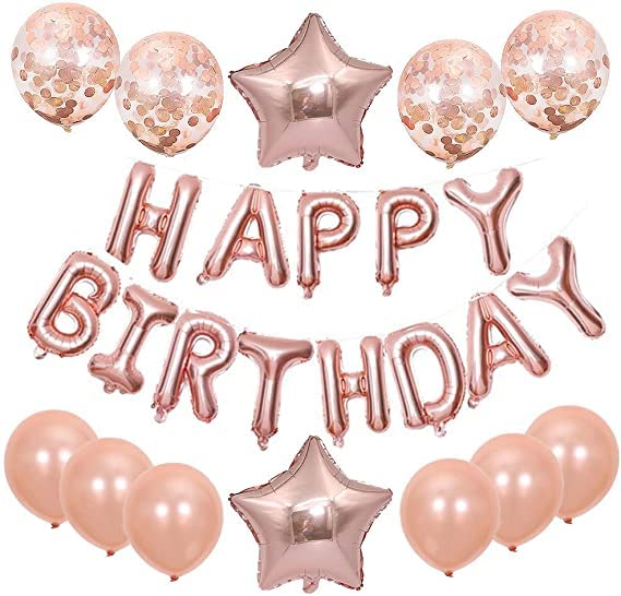 Happy Birthday Banner Balloons Set Kids Party Decorations Kit (Rose Gold) Pack Of 13