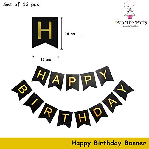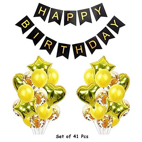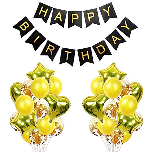 Happy Birthday Banner Bunting Flag with Gold Heart Star Confetti and Latex Balloon for Birthday Decoration(Set of 41)