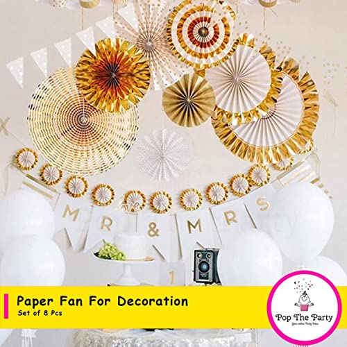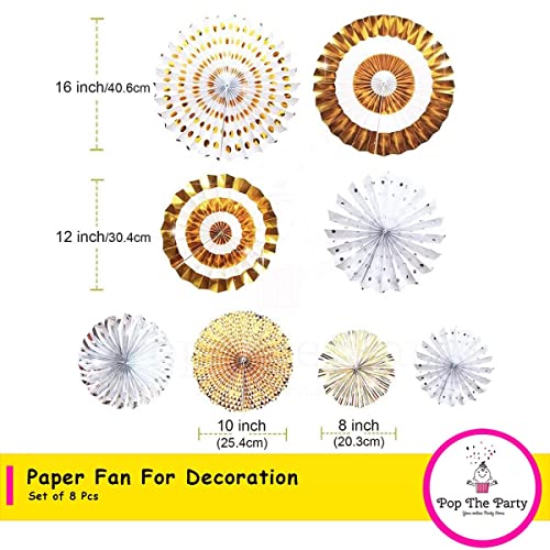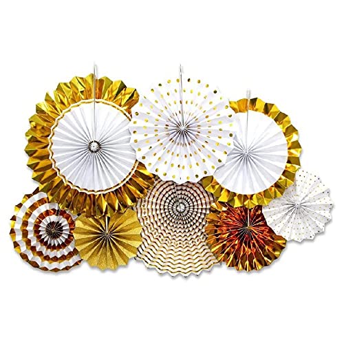 Happy Birthday Banner Party Hanging Paper Fans Decoration for Birthday Wedding Party(White Gold)