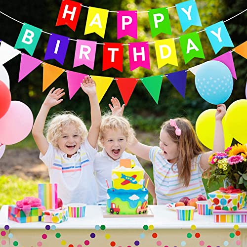 Pop The Party Happy Birthday Banner with Triangle and Round Bunting for Birthday Decoration