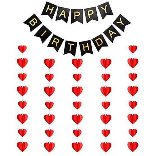 Premium MaterialOur birthday party supplies are made of premium material. All set are non-toxic sturdy and long lasting. Black happy birthday banner Red Heart Strings Bunting.