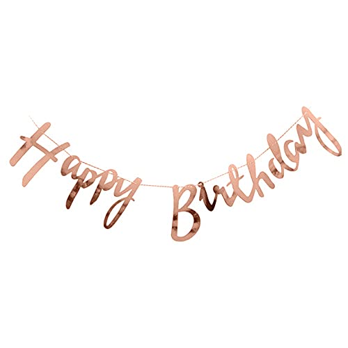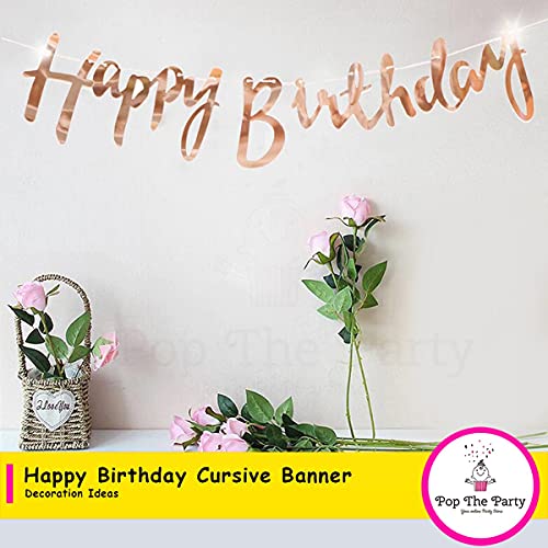 Pop The Party Happy Birthday Cursive Banner for Decoration Rose Gold