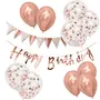 Pop The Party Happy Birthday Cursive Banner with Rose Gold Zig Zag and Rose Gold Confetti, Latex Balloons