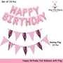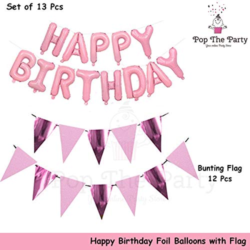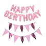 Happy Birthday Latter Foil Balloon with Triangle Flag for Party Decoration (Pink)