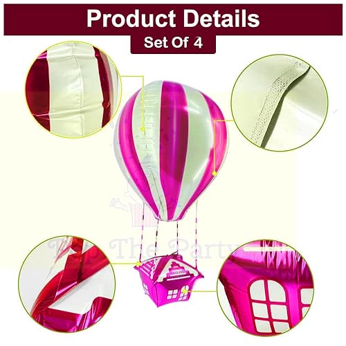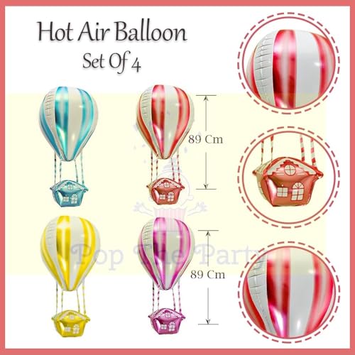 Pop The Party Hot Air Aluminum Foil Parachute balloons for birthday decoration, baby shower pack of 4 (Pink, red yellow, blue)