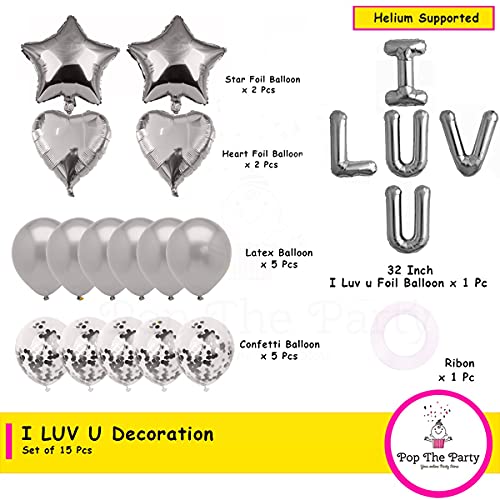 Pop the Party I luv You alfabet Decoration Set with 14 pcs Silver Bunch