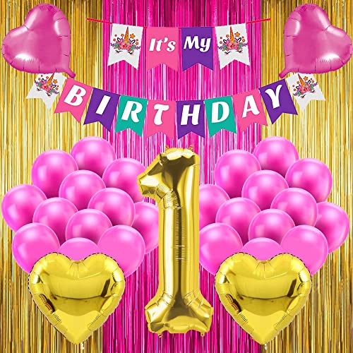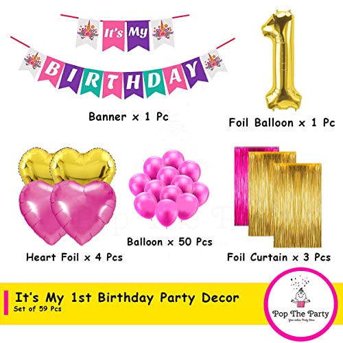 Pop The Party Its My 1st Birthday Decoration Kit Set of 59 Including with cardstock, Heart, Latex, Number Balloon and Curtain