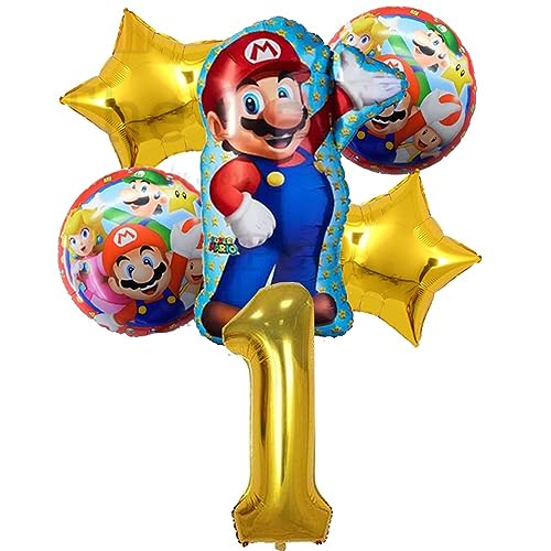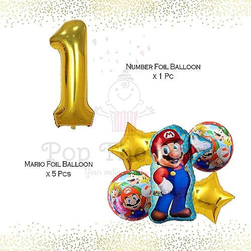 Mario Birthday Party Supplies 6 Pcs Mario Brothers Mylar Balloons For Boys Girls 1St Birthday Baby Shower Mario Themed Party Decorations (1St Birthday)