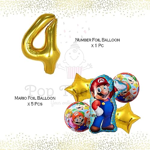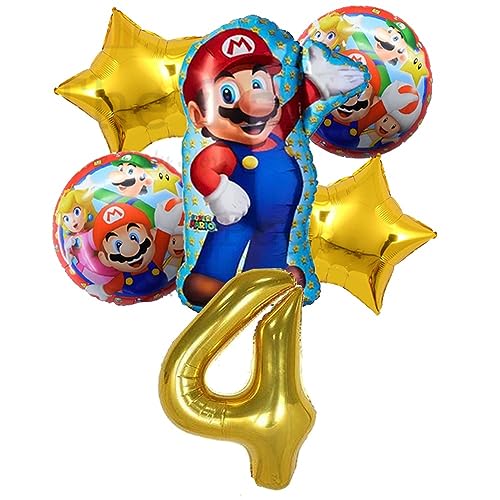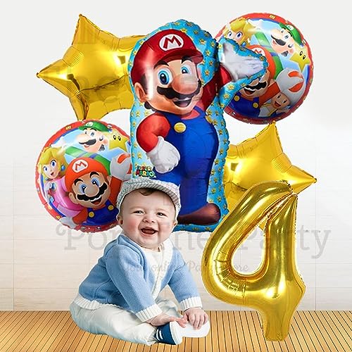Mario Birthday Party Supplies 6 Pcs Mario Brothers Mylar Balloons For Boys Girls 4Th Birthday Baby Shower Mario Themed Party Decorations (4Th Birthday)