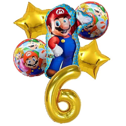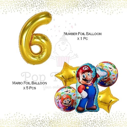 Mario Birthday Party Supplies 6 Pcs Mario Brothers Mylar Balloons For Boys Girls 6Th Birthday Baby Shower Mario Themed Party Decorations (6Tht Birthday)