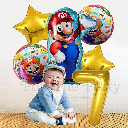 Mario Birthday Party Supplies 6 Pcs Mario Brothers Mylar Balloons For Boys Girls 7Th Birthday Baby Shower Mario Themed Party Decorations (7Th Birthday)