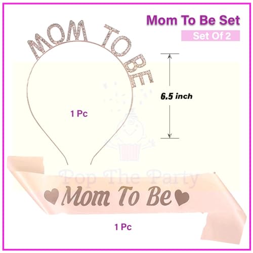 Pop The Party Mom To Be Sash And Head Band 2Pcs For Maternity, Photoshoot Material Items Supplies, Mom To Be Tiara.