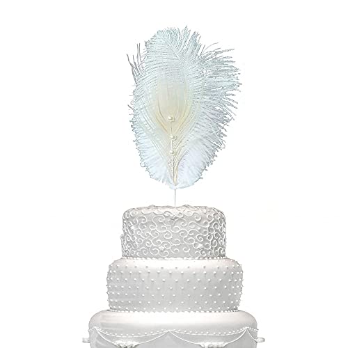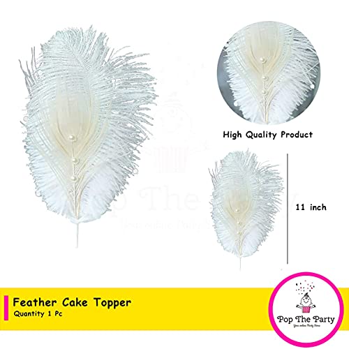 Pop the Party Natural Feathers Cake Topper Great Decorations for Home Party Wedding, Cake Centerpieces White
