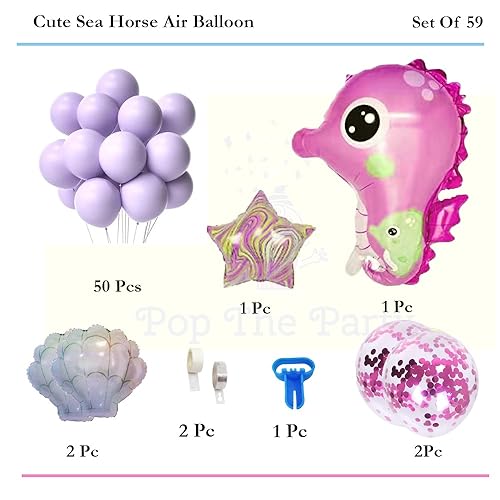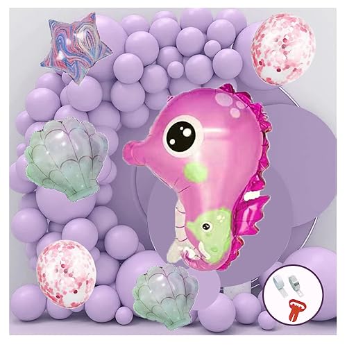 Under The Sea Birthday Party Decorations : ocean theme party Decorations include: 5pcs sea horse foil balloon set 50pcs purple pastle balloon 1pcs balloon arch 1pcs glue dot 1pcs balloon tool