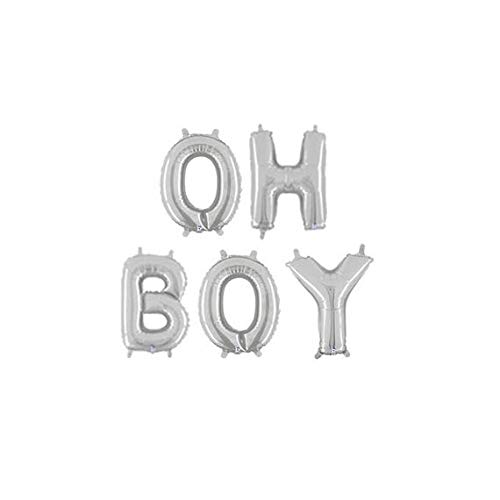 Pop the Party oh Boy Foil Letter Balloons 3D Banner Engagement Party Photo Prop Banner Bachelorette Parties Decorations (Silver)
