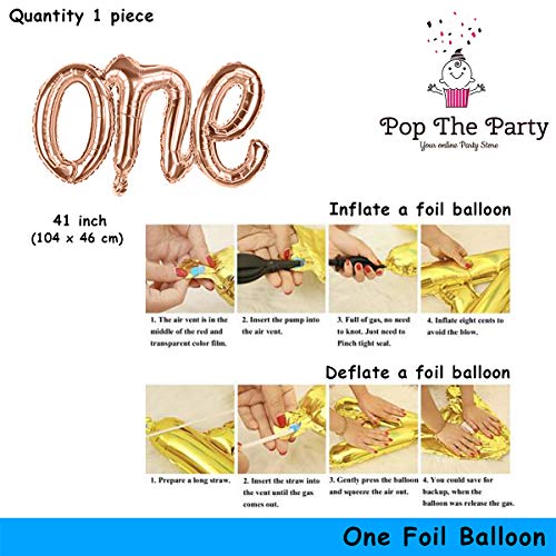HomeBabyParty SuppliesPop the Party One Balloon Banner Rose Gold One Script Balloons Letter Foil Balloons for First Birthday Decoration Birthday Party supplies