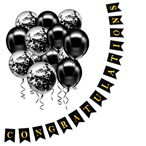 HomeBabyParty SuppliesPop The Party Pack of 11 Pcs Black Congratulation Banner with Black Confetti Balloons for Birthday Decoration Items & Latex Balloon