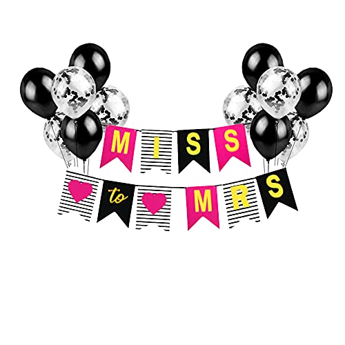 HomeBabyParty SuppliesPop The Party Pack of 11 Pcs Multi Color Miss to Mrs Banner with Confetti Balloons for Bridal Shower Decoration kit & Latex Balloon (Confetti Black)