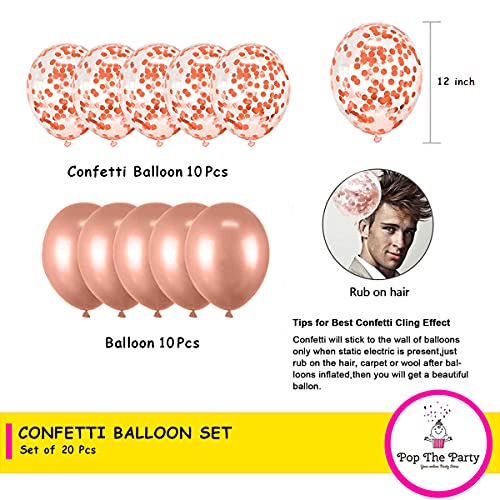 Pop The Party Pack of 20 Pcs Rose Gold Confetti Balloons for Birthday Decoration Items & Latex Balloon