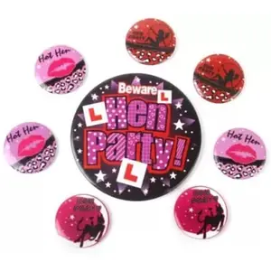 Pop the Party Badge Set of 8 Hen...