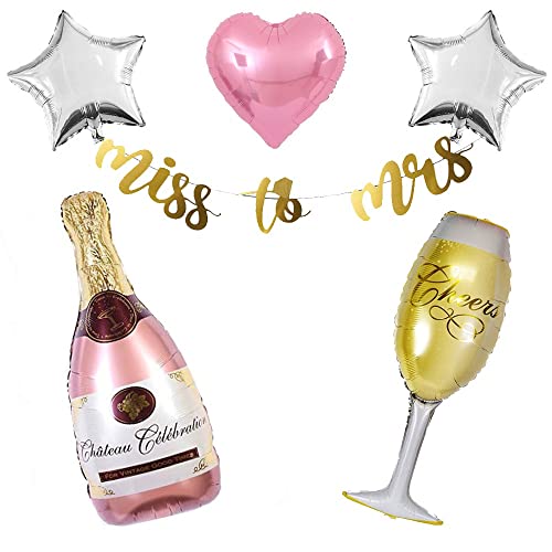 Packege Include: 1 Mis To Mrs Banner2 Silver Star 1 Pink Heart Foil 1 Bottle Balloon1 Gilass Foil Balloon