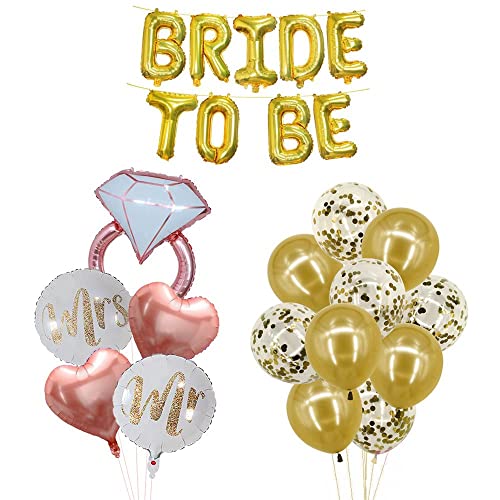 HomeBabyParty SuppliesPop The Party Bachelorette Party Decorations Kits-Gold Bridal Shower Party Decor and Supplies-Gold Bride to Be Balloons, Ring, Mr Mrs Round,Heart Foil Balloon,Latex and Confetti
