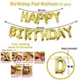 53 Pcs Black and gold birthday decoration kit combo Pack includes - 1 set gold Happy birthday letter foil balloon + 2 pcs silver fringe foil curtain + 50 pcs black golden silver metallic balloons. These happy birthday decorative items are perfect for deco