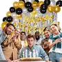 Party Propz Happy Birthday Decoration Kit Combo - 53Pcs Black Golden Silver Items Set with 2Pcs Silver Foil Curtain50 Pcs