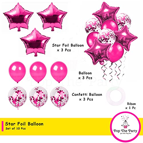 HomeBabyParty SuppliesPop the Party Pink 9PCS/Set Birthday Balloon Set Confetti Star Latex Foil Balloon Garlands for Wedding Decoration Birthday Party Decorations Kids Adults Balloons (Pink)