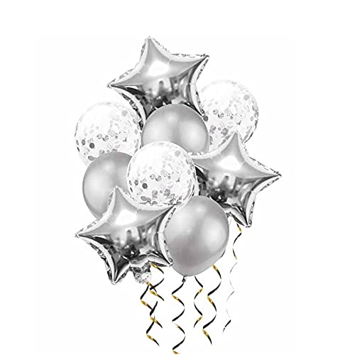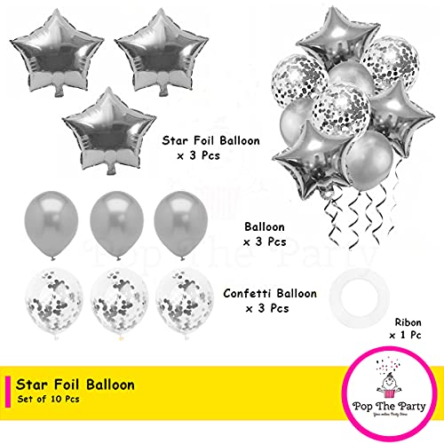 HomeBabyParty SuppliesPop the Party Pink 9PCS/Set Brithday Balloon Set Confetti Star Latex Foil Balloon Garlands for Wedding Decoration Birthday Party Decorations Kids Adults Balloons (Silver)