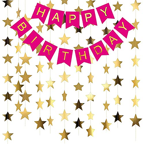 Pink Happy Birthday Banner For Decoration With Star Bunting Set Of 3