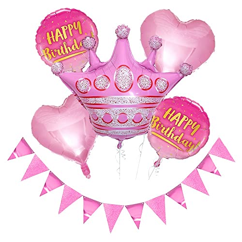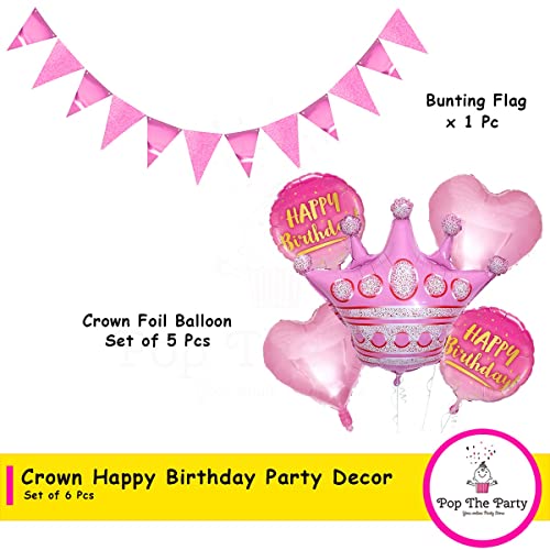 This Is The 6 Pcs Latest And Premium Product By Team Developed After R&D From Our Exclusive Customers. The Pack Includes 1 Pc Pink Crown Foil Balloon And 1 Pc Pink Glitter Flag With 2 Pcs Pink Happy Birthday Printed Balloons And 2 Pc Pink Heart Foil Ballo