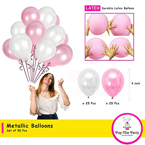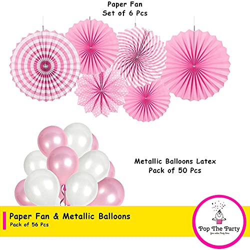 HomeBabyParty SuppliesPop The Party Pink Paper Hanging Fan With White and Pink Balloon for use of Birthday Party Decoration Items | Anniversary Baby Shower Engagement Bridal Shower Backdrop Party Decoration Kit