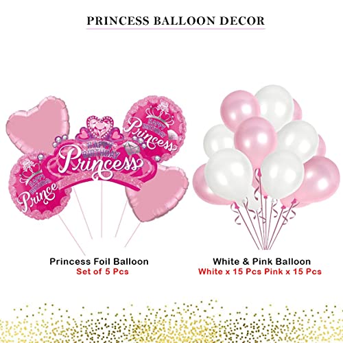 Plastic Happy Birthday Princess Pink&White Ballon With Fringe&Party Popper (5Pcspinkprincesskitp37)