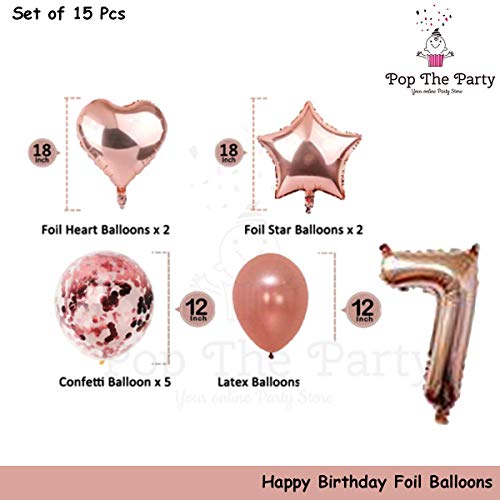 HomeBabyParty SuppliesPop The Party Rose Gold 7 Balloon for 7th Birthday -Large Pack of 15 | Rose Gold Confetti Star and Heart Foil Balloon Bouquet for Party Decoration | Great for 7th Birthday Party Decoration Suplies