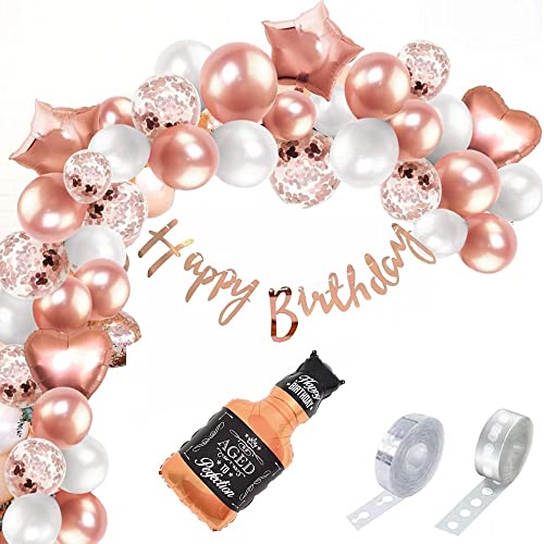 Rose Gold Birthday Decoration Kit With Aged To Perfection Bottle Cursive Banner Starheartlatex Confetti Balloon And Arch For 15Th18Th21St25Th30Th40Th50Th60Th Decoration
