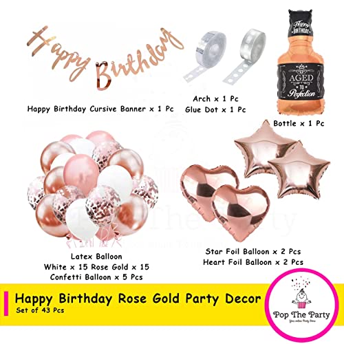 HomeBabyParty SuppliesPop The Party Rose Gold Birthday Decoration kit with Aged to Perfection Bottle,Cursive Banner,Star,Heart,Latex,Confetti Balloon and Arch for 15th,18th,21st,25th,30th,40th,50th,60th Decoration