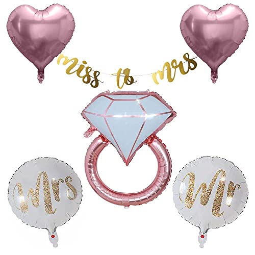 Packege Include:1 Ring Foil Balloon1Miss To Mrs Banner2 Heart Foil Balloon2 Round Foil Balloon
