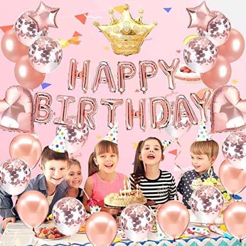 HomeBabyParty SuppliesPop The Party Rose Gold Party Decorations Set,Happy Birthday Confetti Balloons with Crown,Star Heart Foil Balloons for Birthday Supplies (Pack of 36)