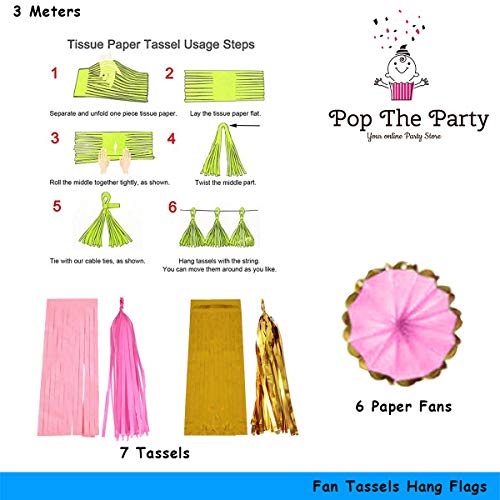 HomeBabyParty SuppliesPop The Party Tassels Cum Fan Hang Flag for Birthday Parties, Weddings, Baby Showers,Anniversaries and Other Occassions(Gold Pink)