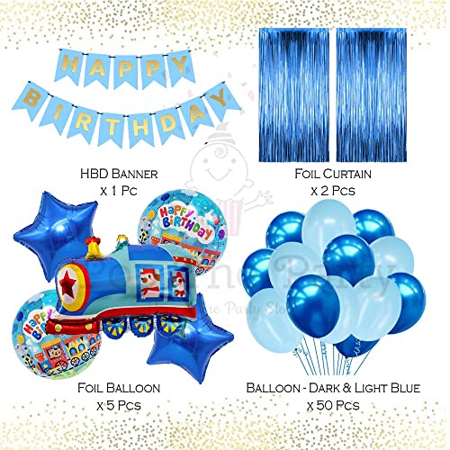 HomeBabyParty SuppliesPop The Party Train Theme Foil Balloons for Kids Birthday Parties, Happy Birthday Decoration for Boys, Railway Station Theme Decoration Pack of 58 Pcs(bluetrainkitp58)