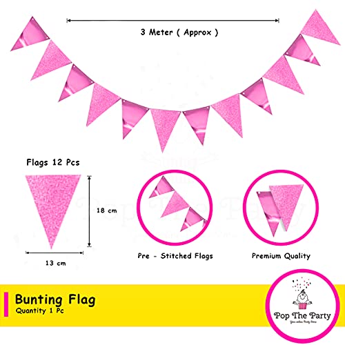 Pop the Party Triangle Flag Bunting Banner,Vintage Style Pennant Banner for Wedding, Baby Shower, Event 12pcs Flags (Pink)
