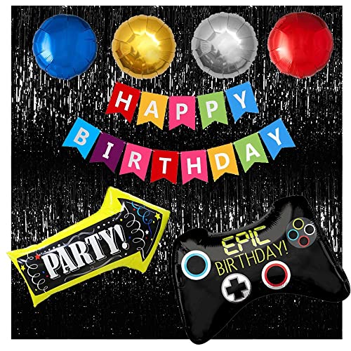Video Game Party Supplies Including Multi Happy Birthday Banner Game Controller Balloons Party Foil And Black Curtain For Kids Boys Birthday Favors Gamer Party Decorations