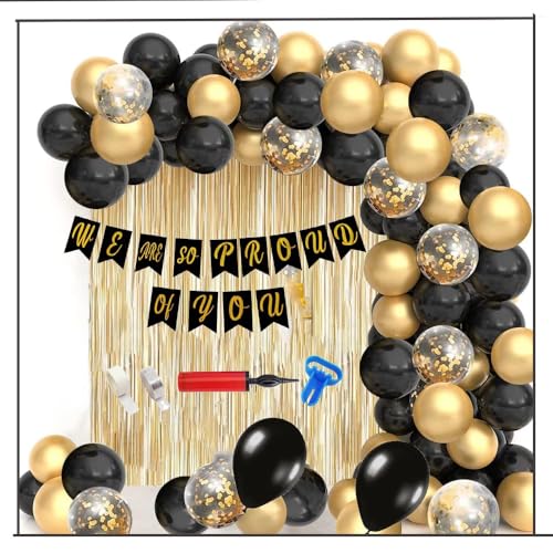 HomeBabyParty SuppliesPop The Party We are So Proud of You Banner Kit | Black and Gold Graduation Decorations Class | Proud of You Grad Banner | Graduation Party Decorations | Army Party Decorations. (PackOf57)