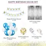 HomeBabyParty SuppliesPop The Party White Birthday Banner Party Decorations Kit Gold Confetti,white And Blue Balloons, Arch,Glue Dot And silver Curtains for Boys Girls Men Women Birthday Party Decoration (White)