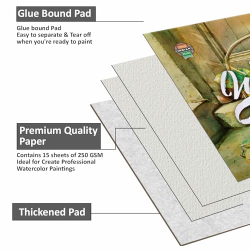 • High-quality Drawing Paper :- 100% cotton paper heavy 250gsm sheets is able to absorb water and pigment more readily than other types of paper this will ensure that you get the best absorbency and color vibrancy when you use your watercolors and other wet